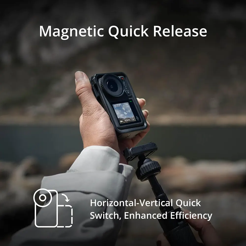 Magnetic quick-release system for fast accessory swaps; compatible with most action camera mounts