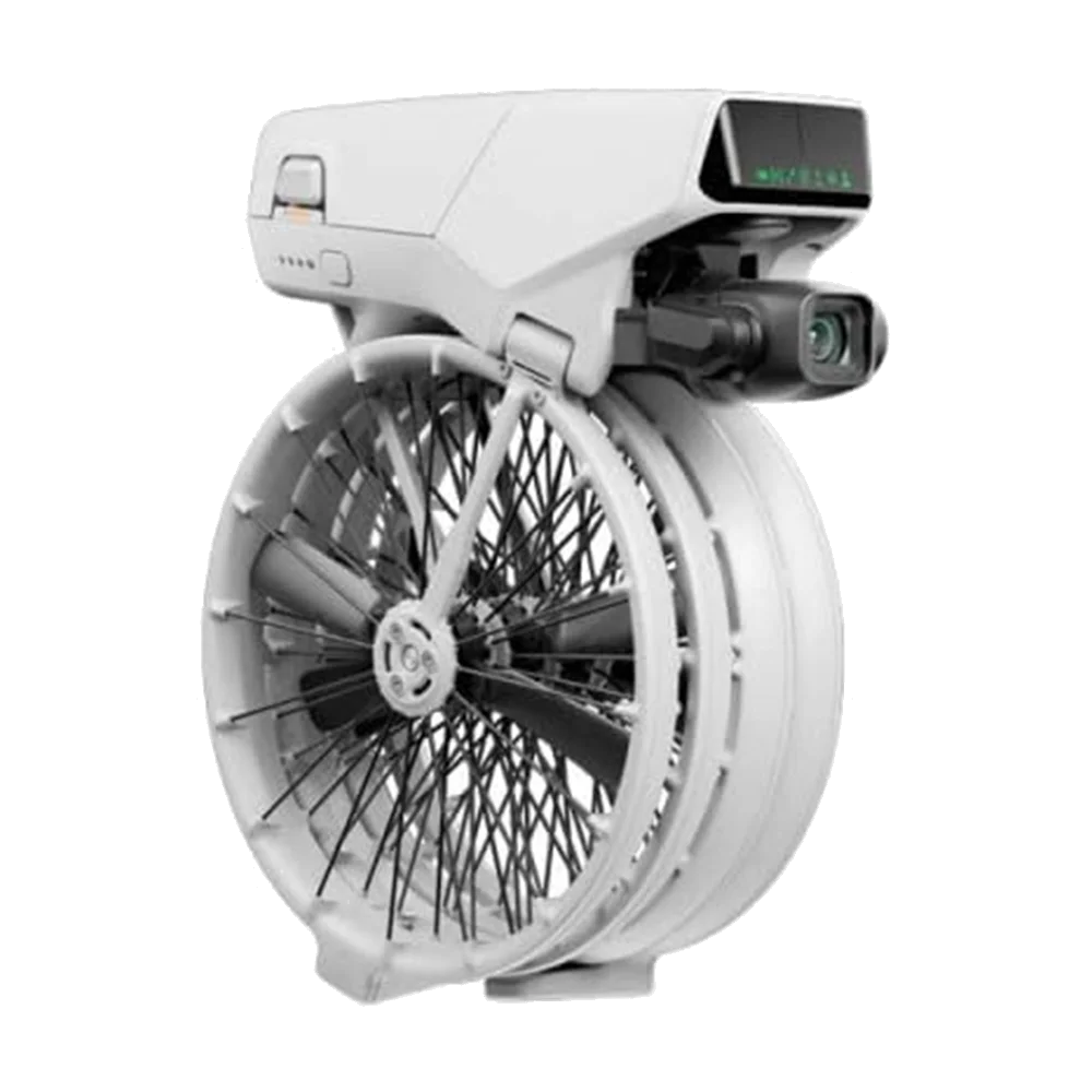 Foldable full-coverage propeller guard with carbon fiber support (1/60 weight of traditional PC material), no official IP rating