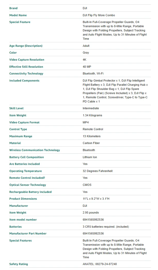 Note: The DJI Flip Fly More Combo may have limited compatibility with certain devices in Australia due to grey import status. Verify compatibility with local networks and devices before purchase. The DJI Fly app, required for activation and full functionality, is unavailable on Google Play and must be downloaded from the DJI website. Ensure the latest firmware and app for optimal performance.