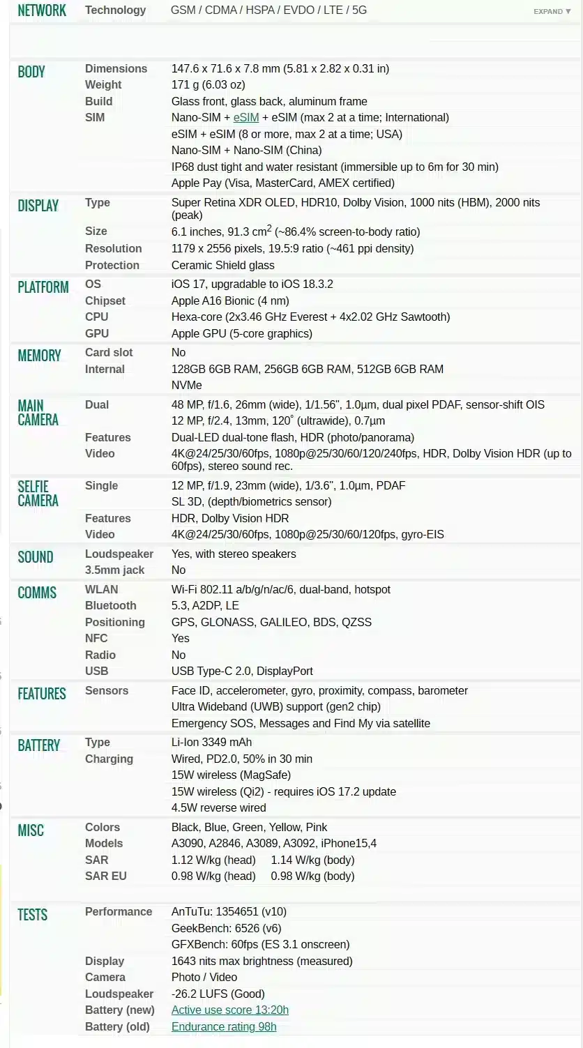 The iPhone 15 is powered by the Apple A16 Bionic chipset—the same high-performance processor used in the iPhone 14 Pro lineup. With a 6-core CPU (2 performance and 4 efficiency cores) and a 5-core GPU, the device ensures lightning-fast responsiveness, efficient multitasking, and stunning graphics performance whether you’re gaming or editing high-resolution videos.