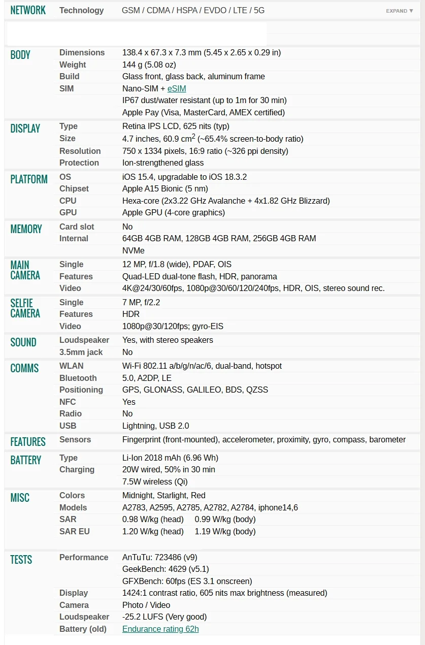 Apple iPhone SE (2022)