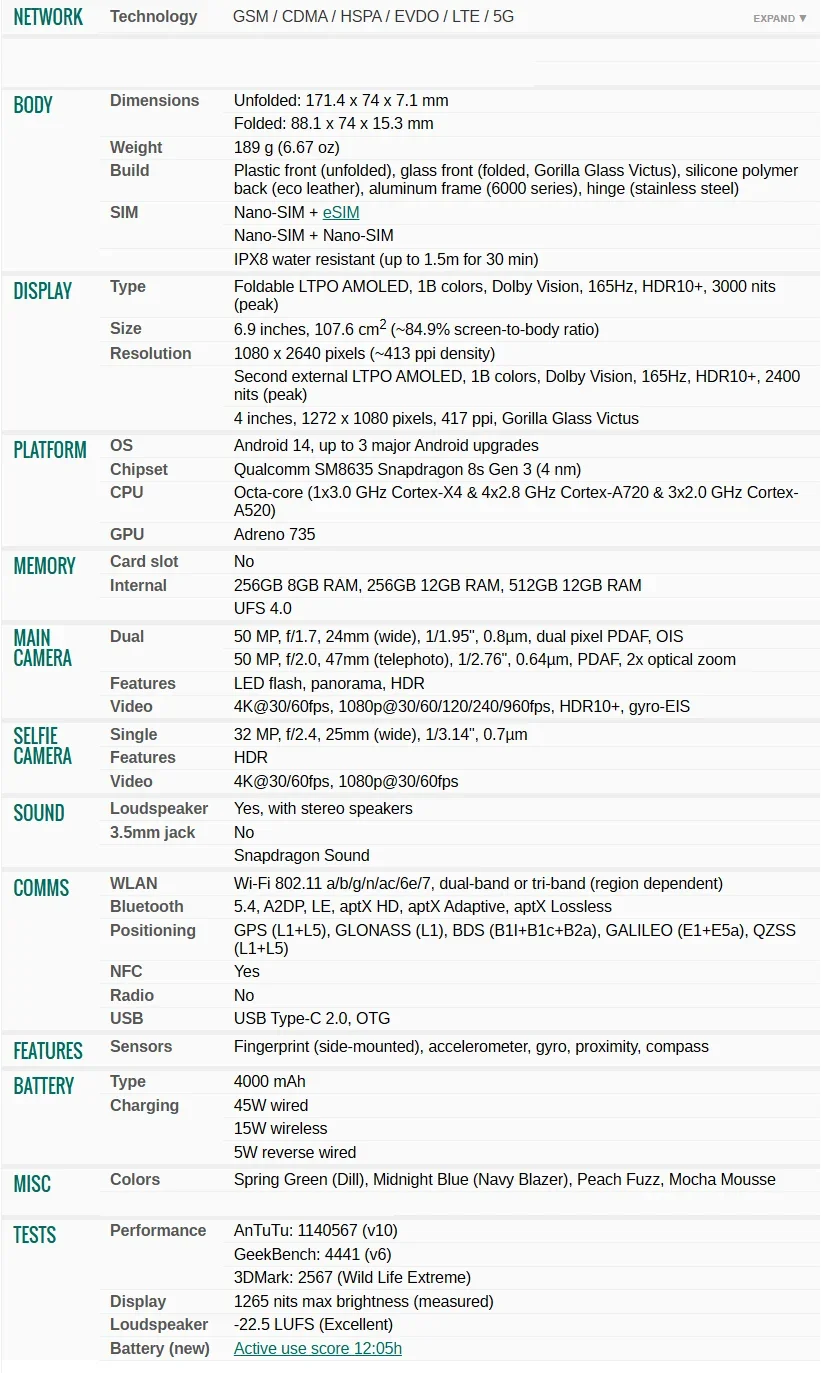 Enjoy a stunning pOLED main display with a high refresh rate, offering vibrant colors and smooth scrolling. The expansive external display allows you to check notifications, reply to messages, and even run apps without unfolding the phone.