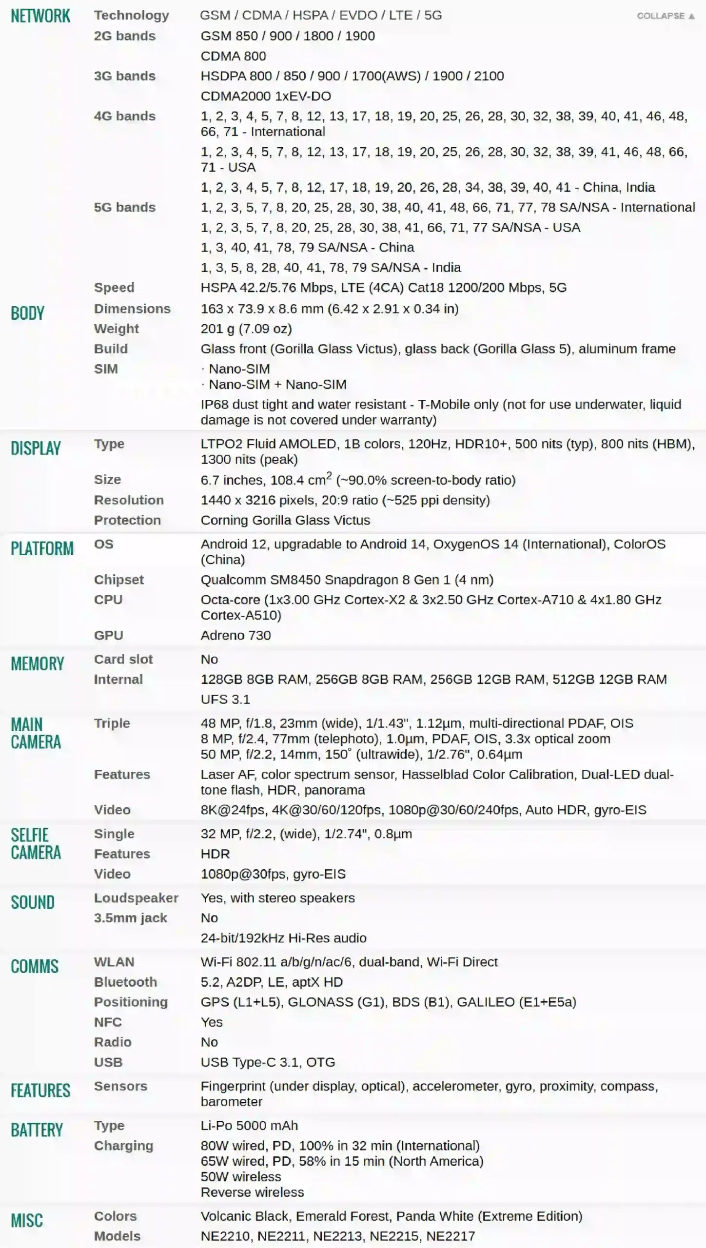 Redesigned with a seamless unibody form and ceramic rear camera cover, the OnePlus 10 Pro radiates refinement. Its finish in nature-inspired colorways like Emerald Forest and Volcanic Black offers both visual sophistication and a sense of identity.