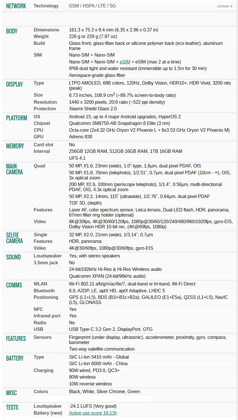 Under the hood, the device is powered by the Snapdragon 8 Elite chipset, based on a 3nm architecture. It offers excellent multitasking and gaming performance, backed by 16GB of RAM and 512GB – 1TB of internal storage. The Xiaomi 15 Ultra runs on HyperOS 2, which introduces AI-driven optimizations and long-term software support, enhancing user experience over time.
