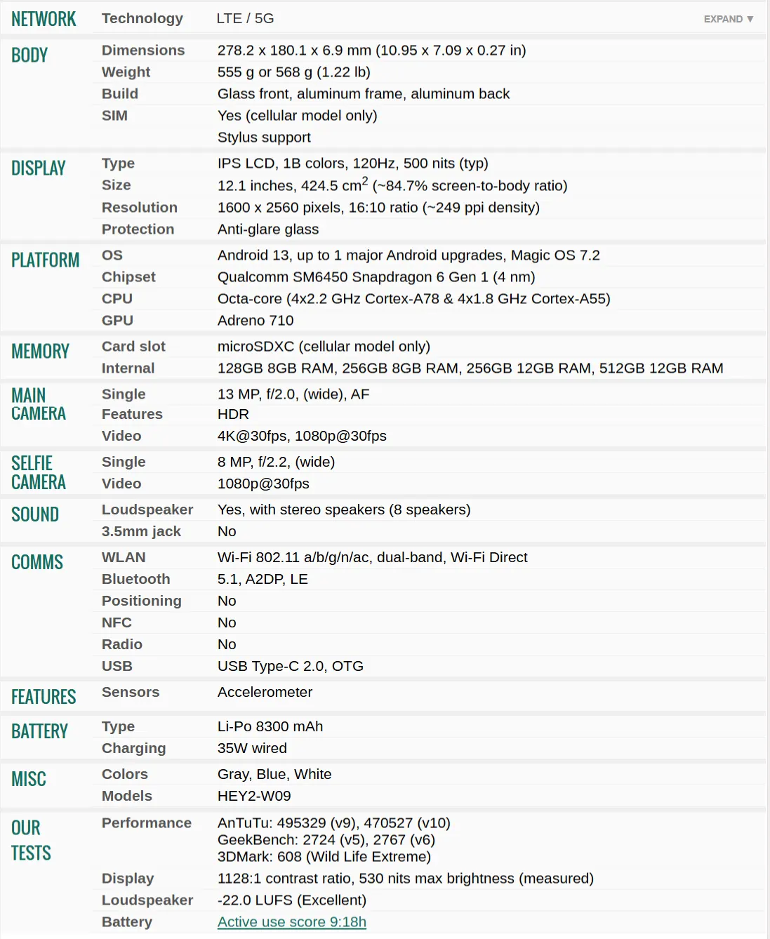 Features Multi Window for multitasking, HONOR Magic Link for device sharing