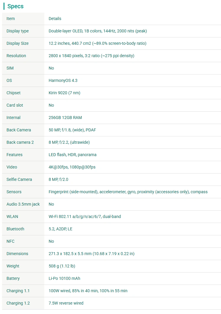 Runs HarmonyOS 4.2 (or later via HOTA update), with 2 years of OS updates expected