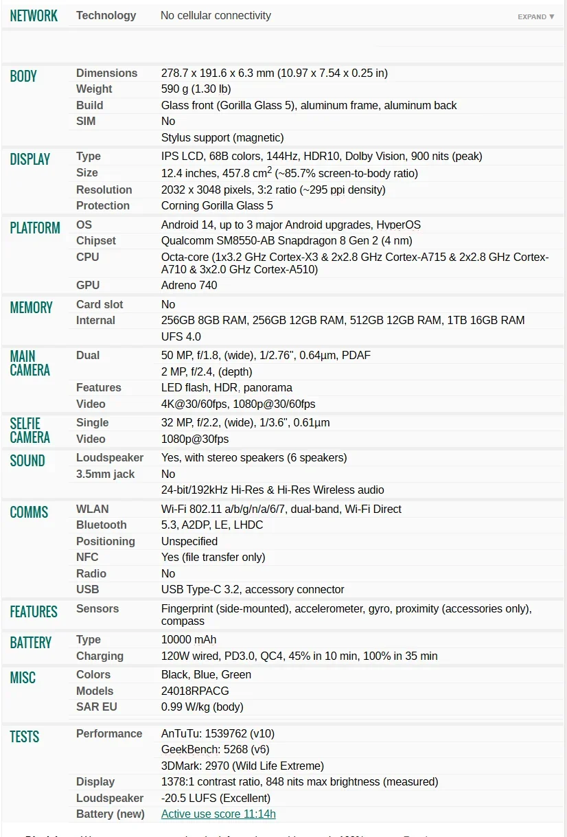 Running on the latest **MIUI for Pad**, the tablet provides an optimized experience tailored for large-screen multitasking. It also supports **smart accessories**, including the Xiaomi **stylus and keyboard**, making it an ideal device for note-taking, sketching, and productivity.